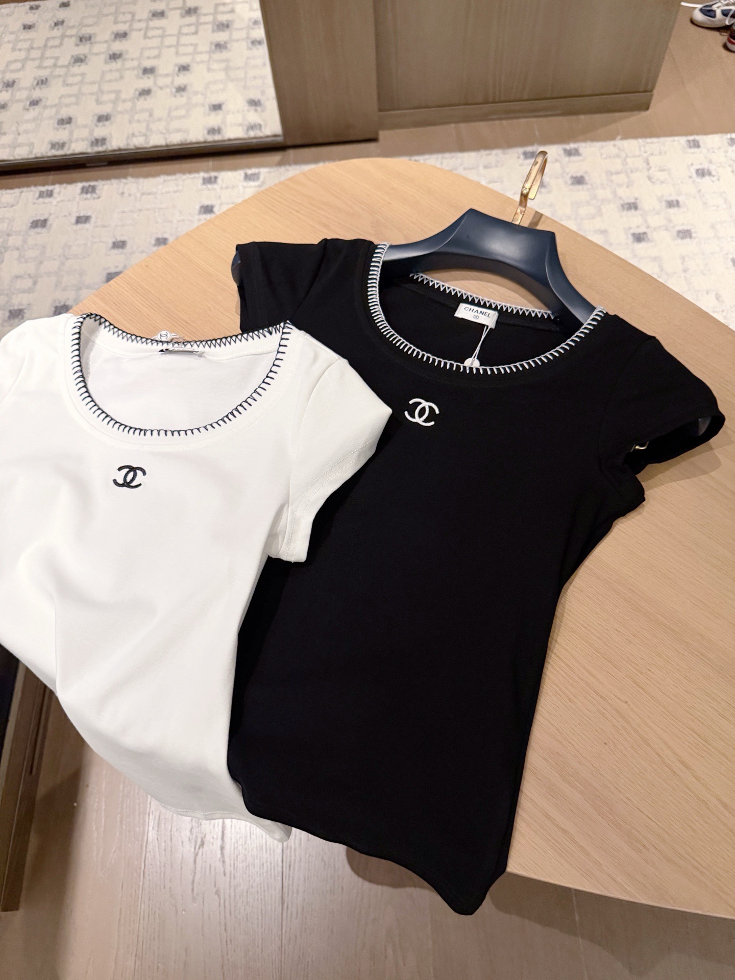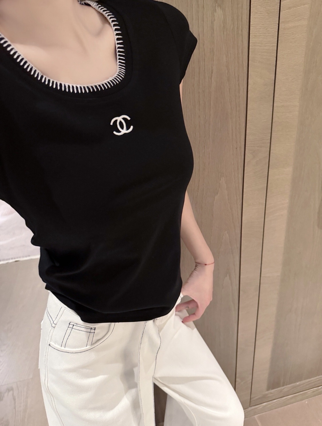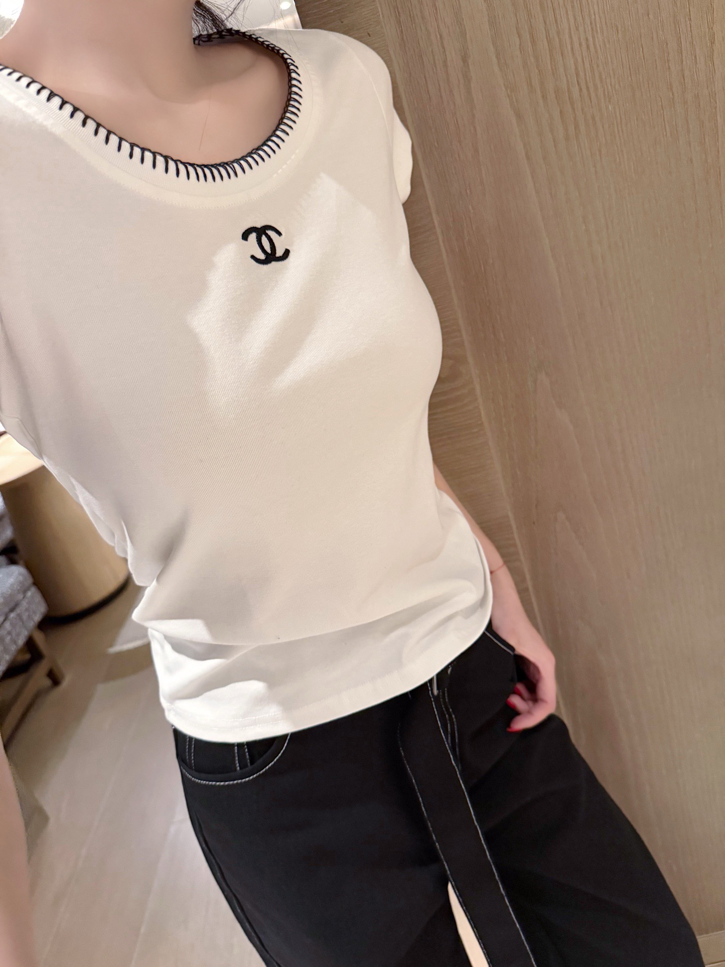 Crafted from soft, stretchy fabric, it features a subtle embroidered logo for a luxe touch. Its slim fit flatters the silhouette, making it a versatile staple for everyday wear .✨