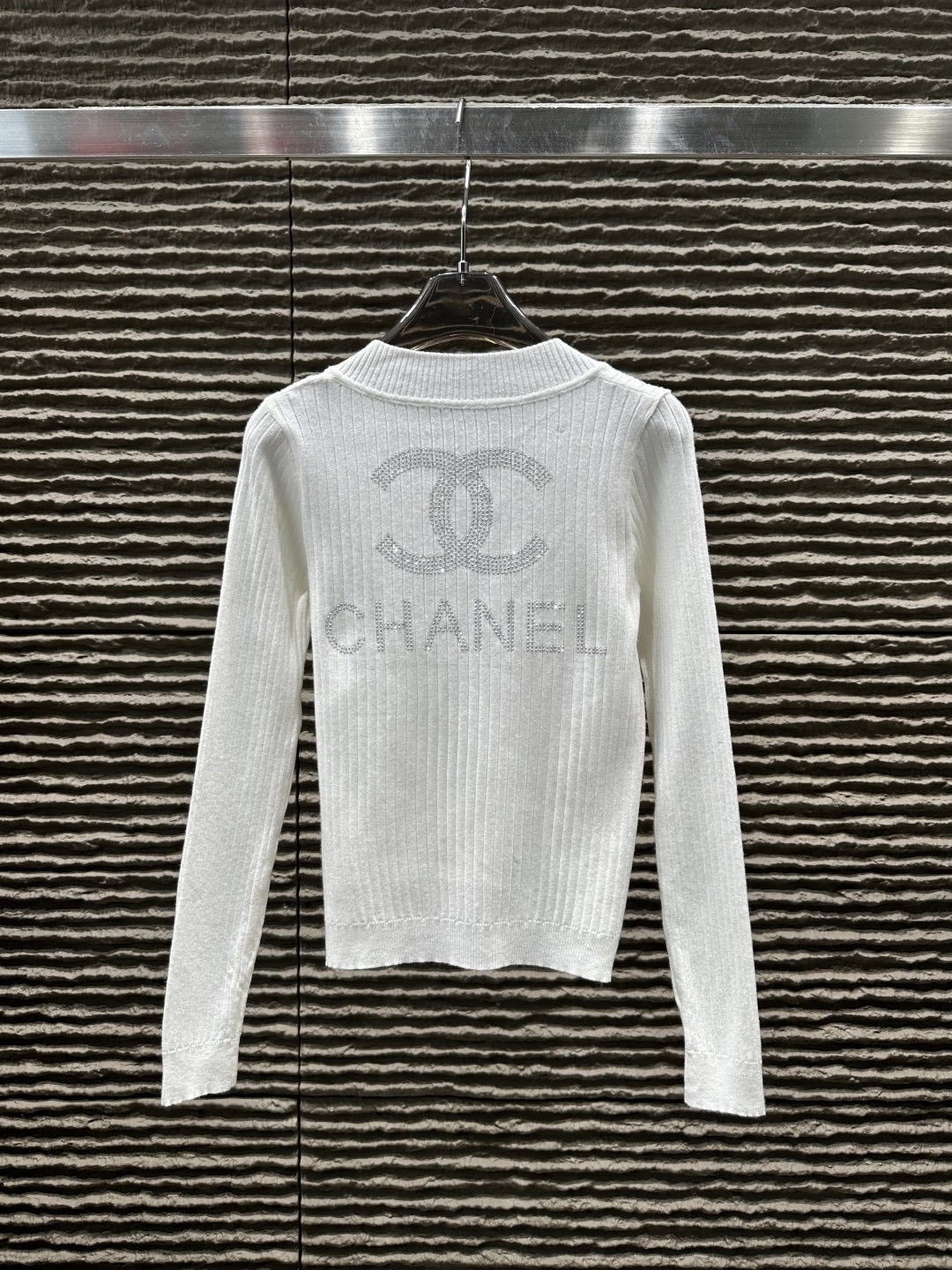 Features a heavy rhinestone logo for a polished look. Elegant and feminine. Perfect for layering or wearing alone.
